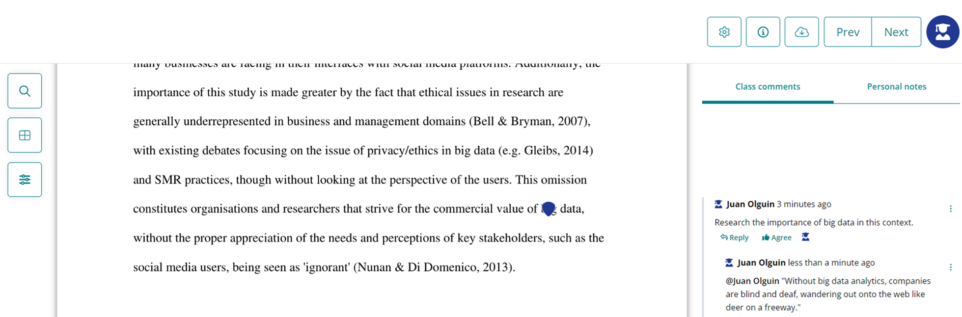 Talis Engage is a new built-in digital resource reader and social annotation feature available in both Talis Aspire and Talis CourseFlow. Designed to support collaboration, boost engagement, and streamline content access, Talis Engage keeps students focused — all within their course resource list.